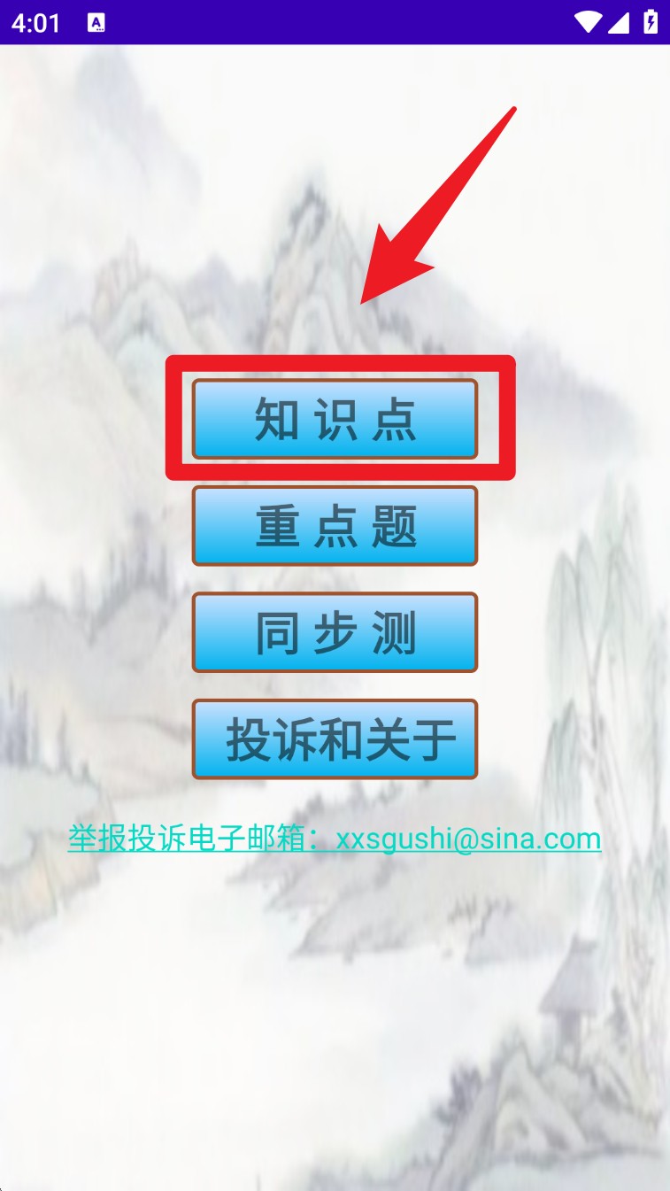 1. 进入 App 主页面后,点击最上方的「知识点」按钮,即可进入章节目录,按课次查看学习内容。