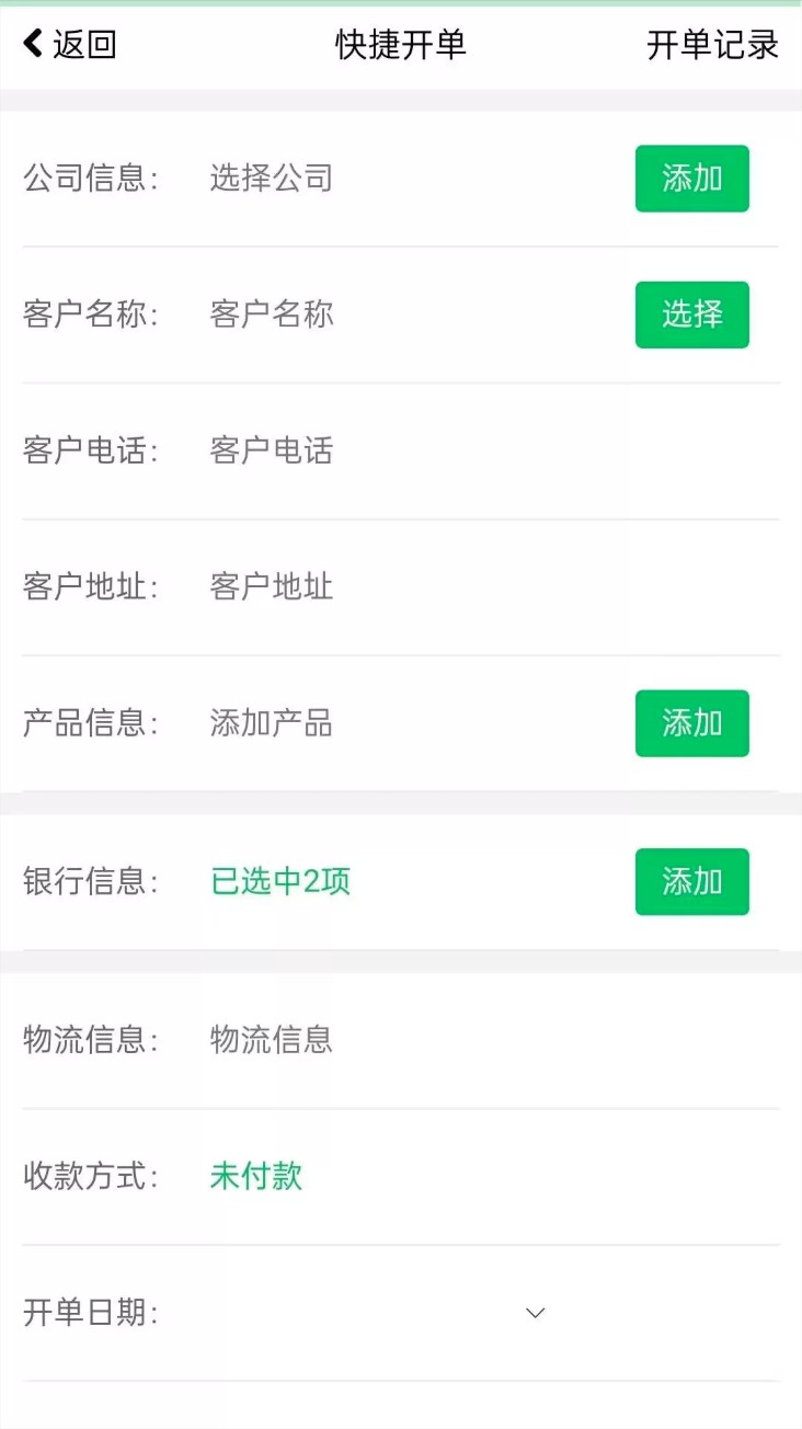 1. 支持用户开单,包含员工开单、客户开单、企业开单。