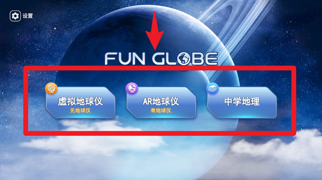 1. 进入首页后,会看到“虚拟地球仪”、“AR地球仪”与“中学地理”三大模块,点击任一模块即可开始探索。