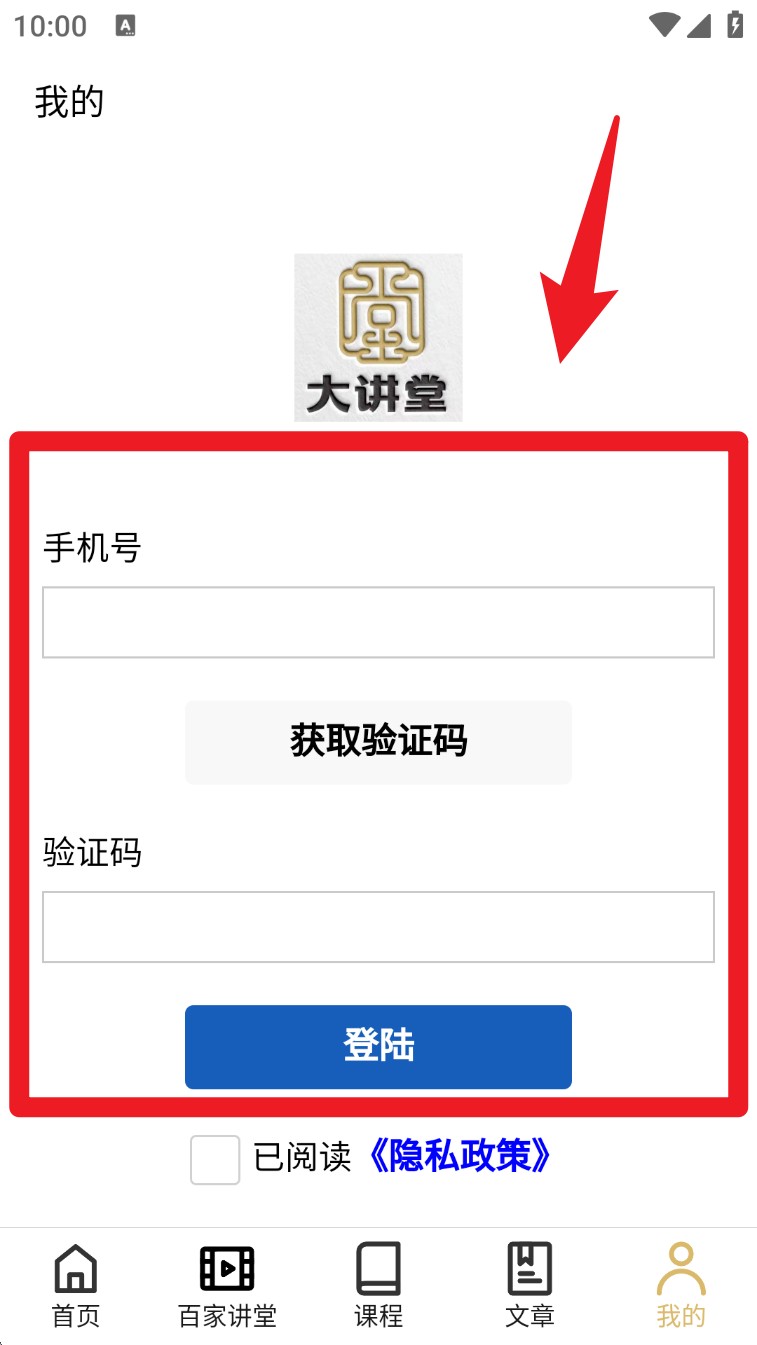 1. 打开 App 并点击右下角「我的」,进入后输入手机号,点击「获取验证码」并完成登录。