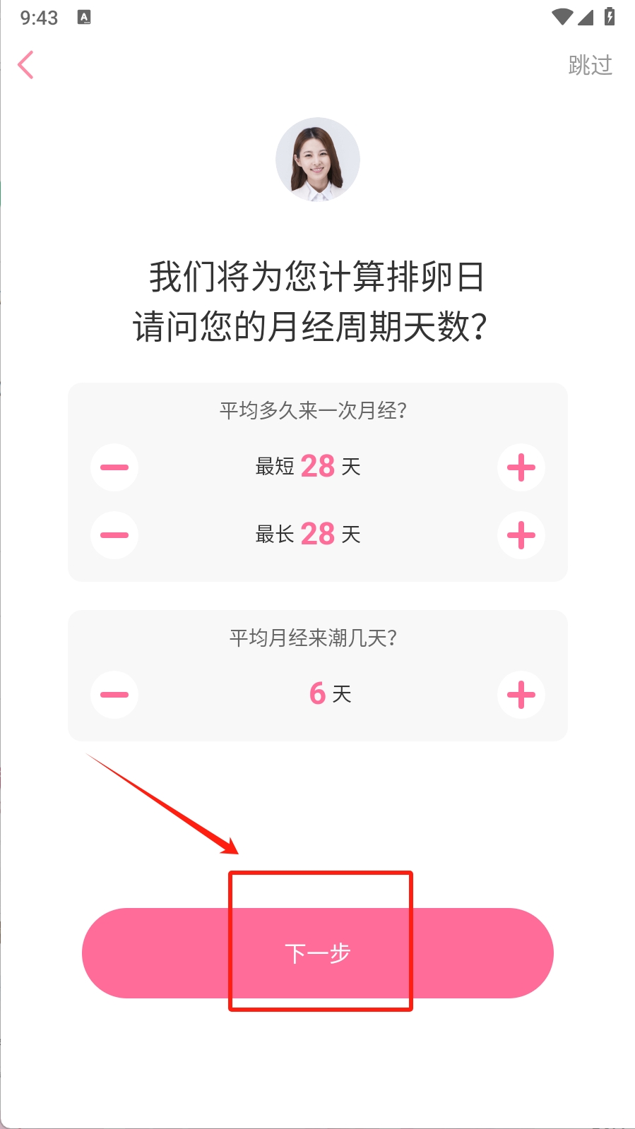 3、第三步:在月经周期信息页面,输入您的月经周期天数,点击“下一步”按钮继续。这一步是为了帮助软件更准确地计算您的排卵期。