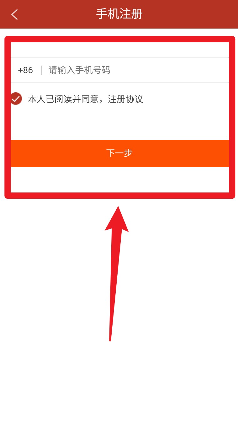 4. 未注册用户点击购买后会跳转至手机号注册页面,填写号码并勾选协议后点“下一步”。