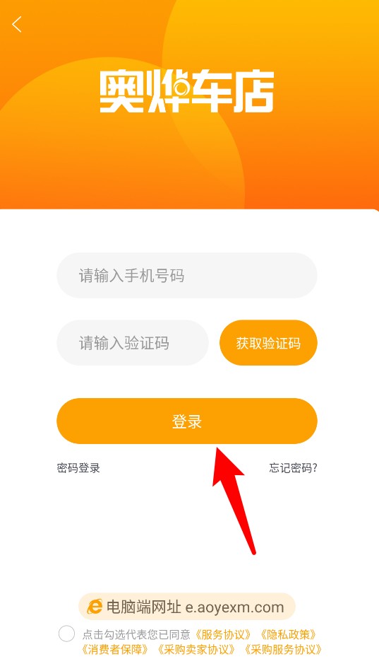 1、输入手机号和验证码,点击下方“登录”按钮完成账号快速登录操作。