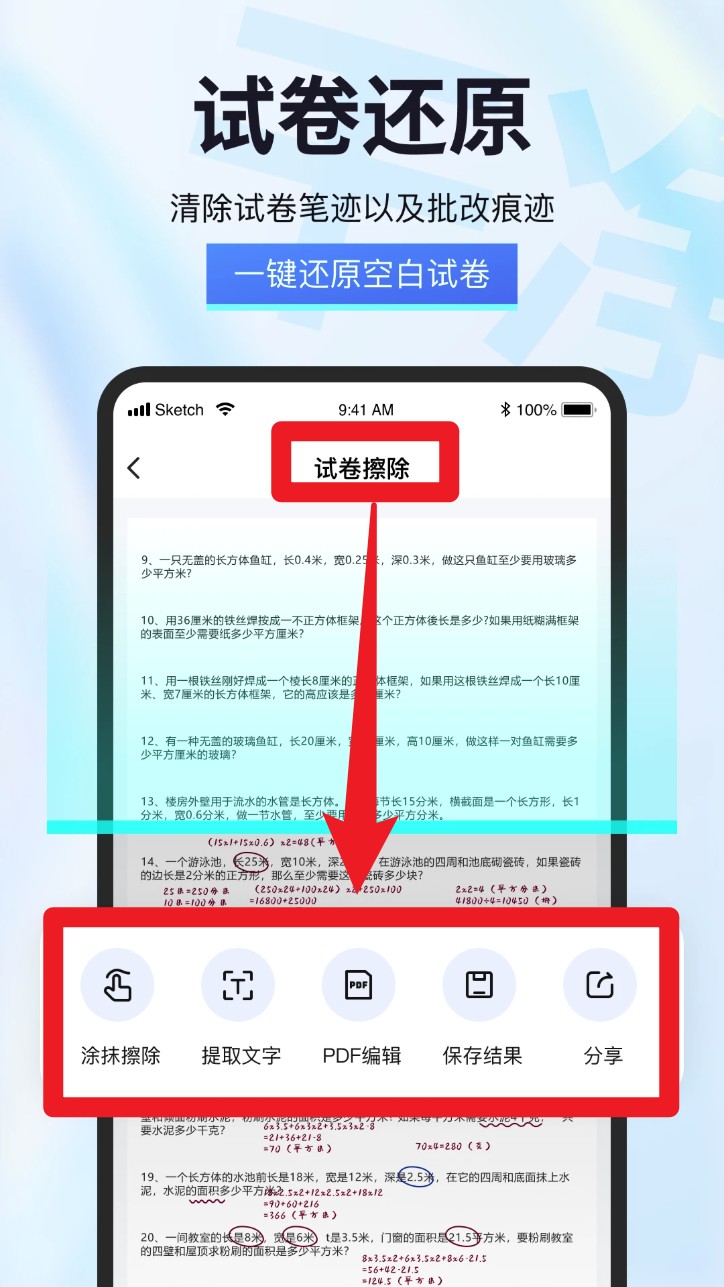 智能清除功能,一键擦除试卷上文字,还原全新试卷。