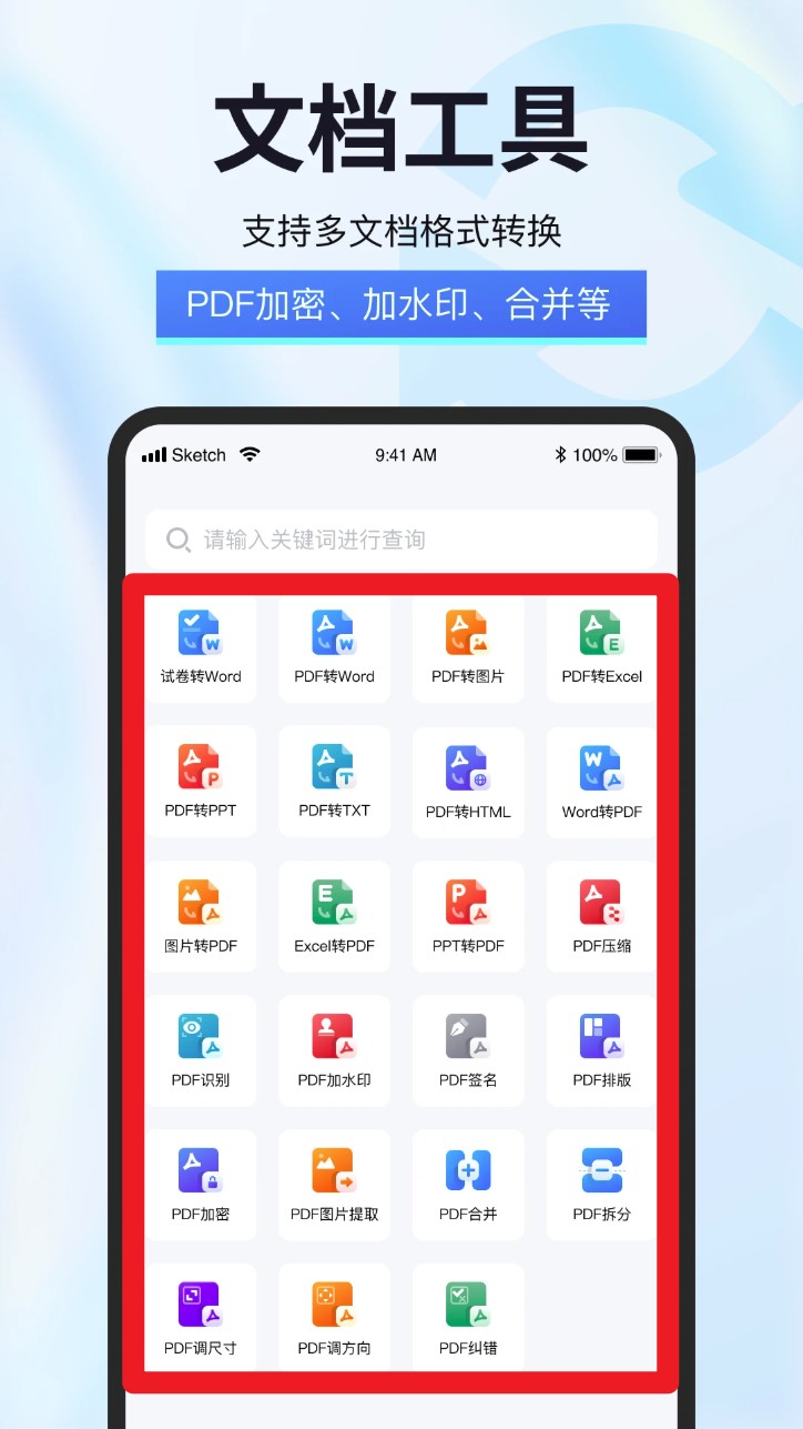 3. 打开“文档工具”模块后,可对文件进行格式转换、水印添加、压缩合并等操作,支持多种办公格式。