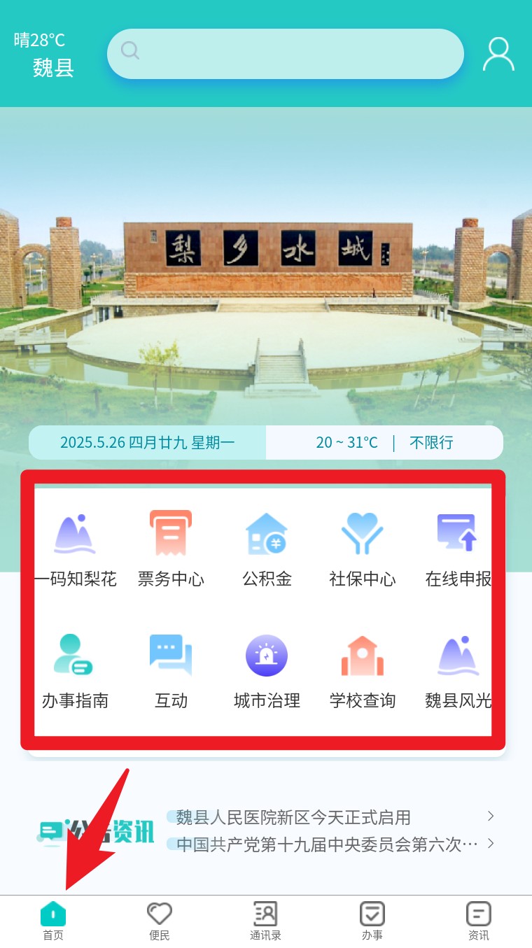 为提升市民数字体验获得感与幸福感,以数据整合能力为支撑,实现魏县政务数据互联互通,一个 app 实现衣、食、住、行、医、教、养、政等一站式民生服务平台。提供健康码、便民缴费、快递查询、政民互动等服务。