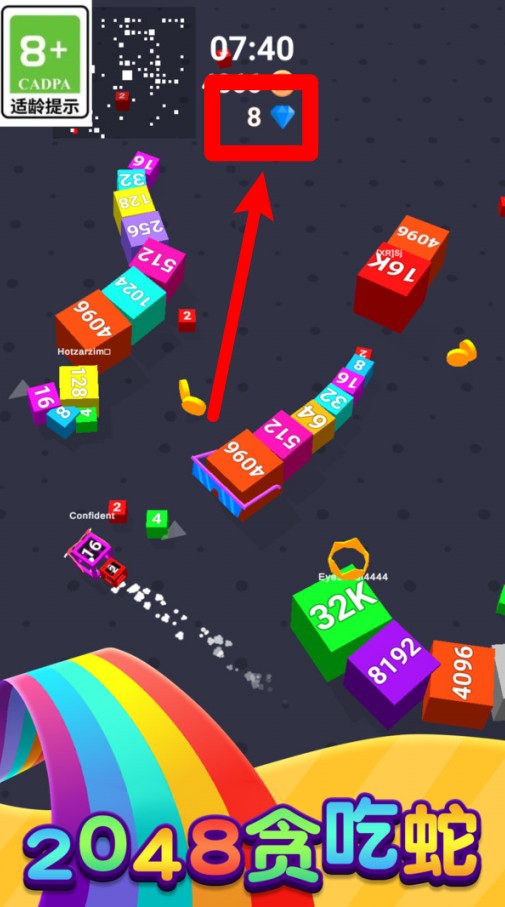 2.你在本局游戏中收集的宝石数量8,用于解锁皮肤和其他道具。