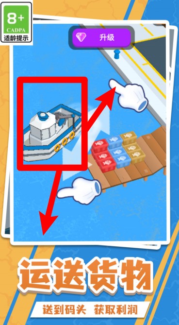 1.点击屏幕拖动货船将货物送到码头换取利润,轻松操作。