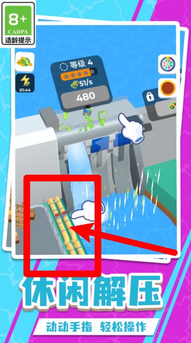 4.点击屏幕滑动手指启动木材运送,轻松推动到下游水域。