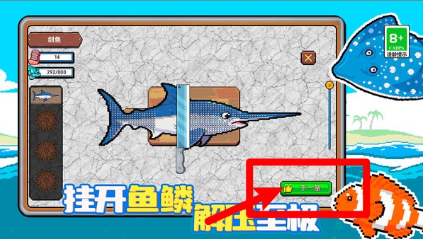3.右下角绿色按钮是“下一条”操作,点击后可直接解锁下一个鱼种,挑战更多任务。