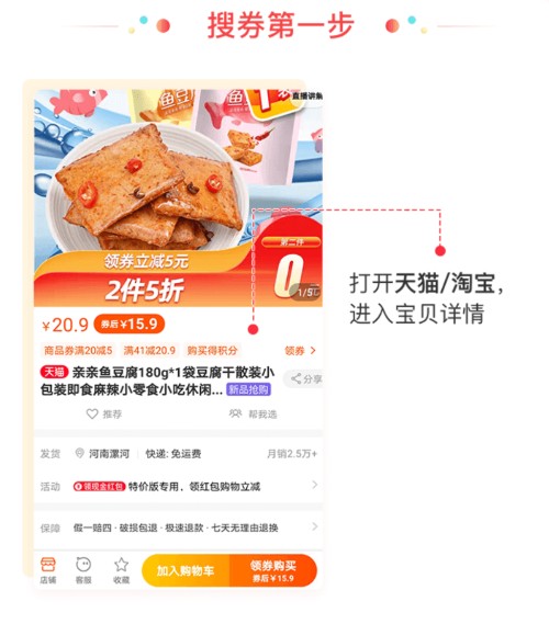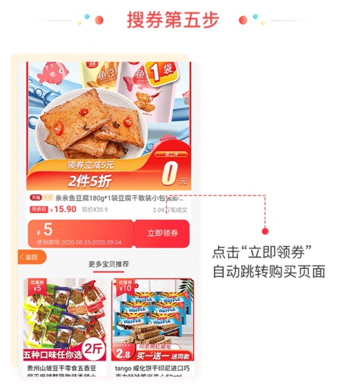 4、在搜索结果中找到目标商品,点击即可进入优惠券页面领取使用。