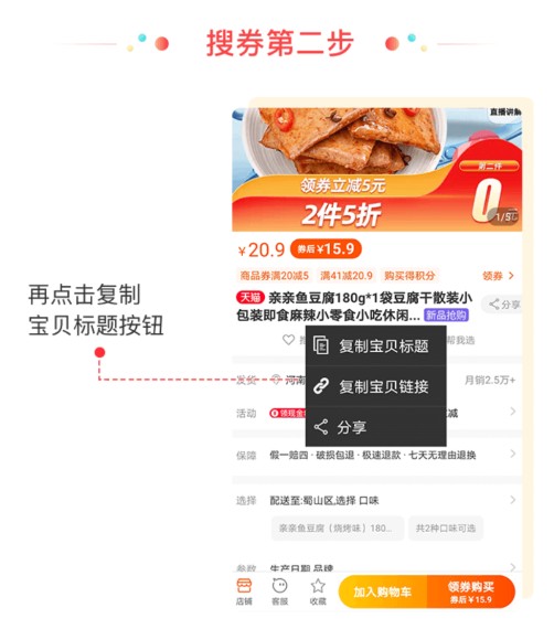 2、点击复制按钮,选择“复制宝贝标题”或“复制宝贝链接”内容。