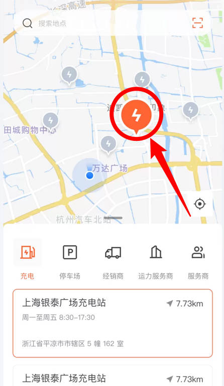 1.点击地图中的充电图标,可查看附近充电站位置与营业信息。