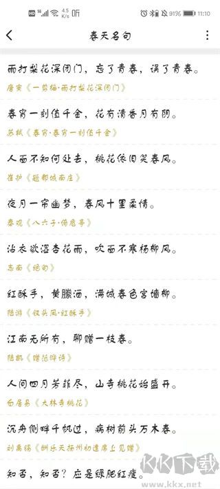 4、点击感兴趣的古诗,下方会显示详细注释。