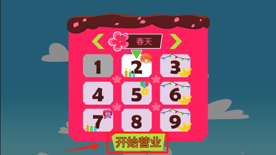 2、选择一个季节主题,点击开始营业,根据季节变化调整经营策略。