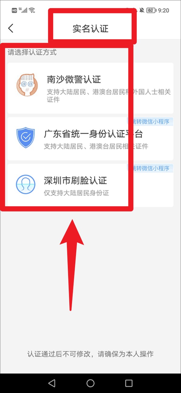 4. 接着进入实名认证环节,依照实际情况选择「微警认证」或「刷脸认证」完成身份验证。
