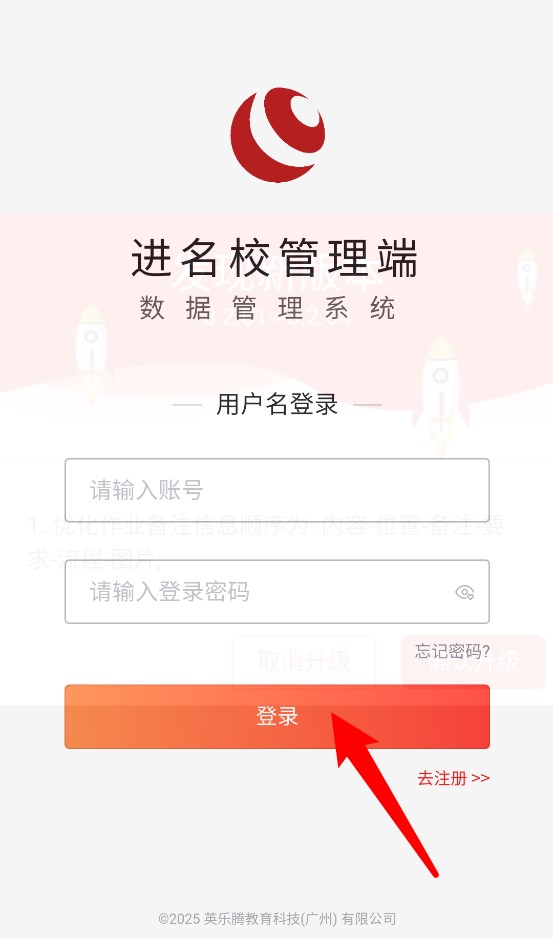 1、输入账号及密码后点击“登录”按钮进入进名校数据管理系统。
