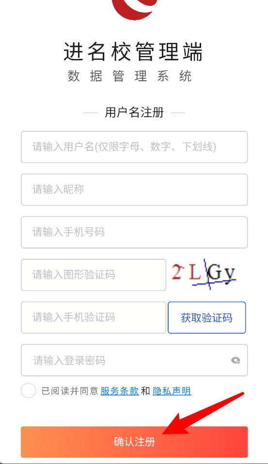2、若尚未注册,可点击“去注册”,填写信息并验证后确认注册。