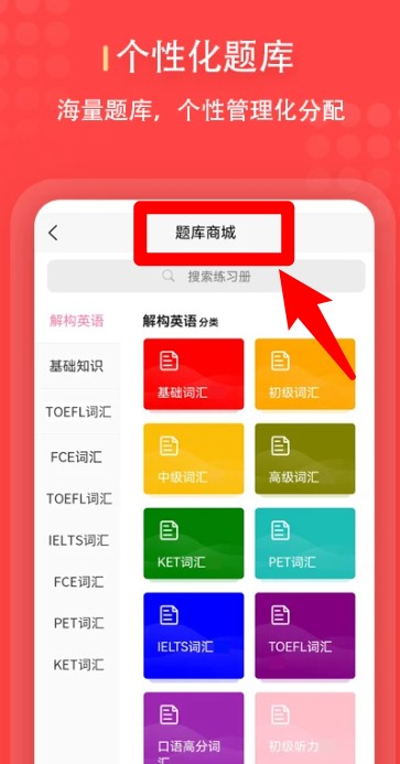 4、点击“题库商城”可选择不同分类题库,实现个性化教学资源分配。