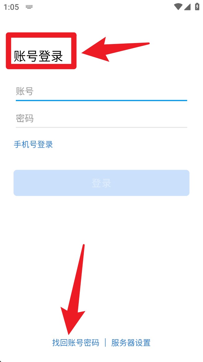 3. 若忘记密码,可点击下方「找回账号密码」,输入绑定手机号,按步骤完成身份验证。