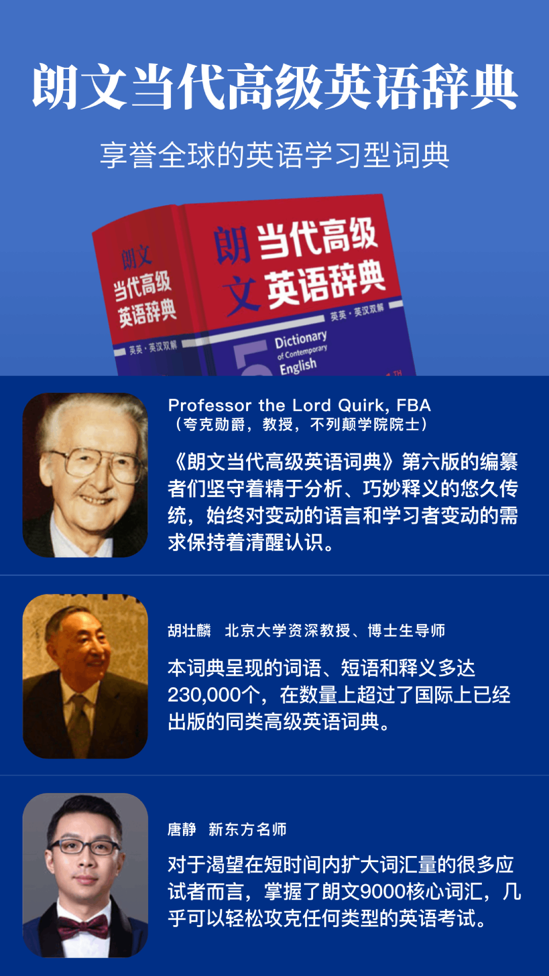 朗文当代高级英语词典app是英语学习者的宝藏工具!不仅是词典,更是语法宝典、搭配词典、口语指南,配合外教视频微课、语法专栏、词汇辨析,多媒体“阅典”体验超有趣,还有智能背词计划助你轻松记牢单词,快来体验这款全能英语学习神器吧~