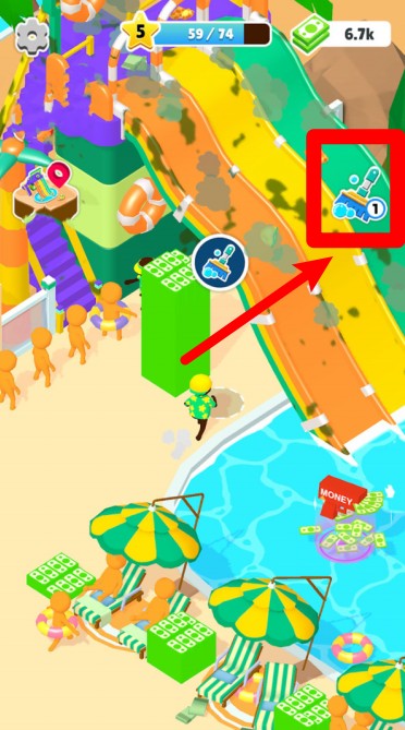 2.设施建设:收集资源升级设施,自由布局滑道与水上项目,扩展园区规模,吸引更多游客增加收益。