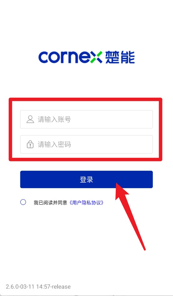 1、打开APP后点击“账号密码登录”输入账号与密码,勾选协议后点击“登录”按钮即可进入系统主页。