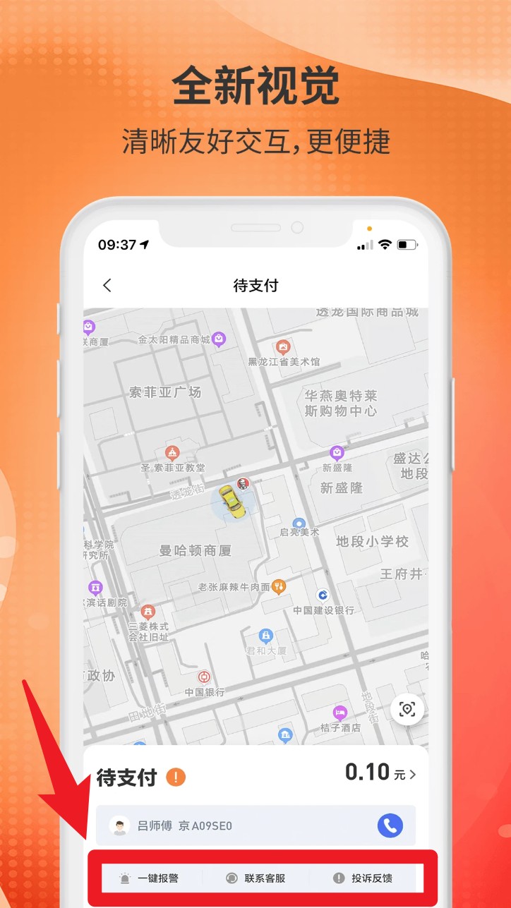 3. 下单成功后可实时查看司机位置与车辆信息,并支持一键报警和联系客服。