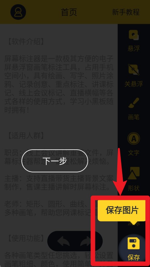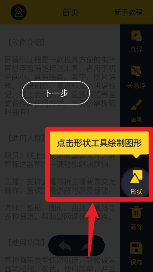 2、帮助您在各种软件、电子屏、直播画板、会议文件、课件上进行重点标注、文字标注、形状标注等,并且支持悬浮窗使用等功能。