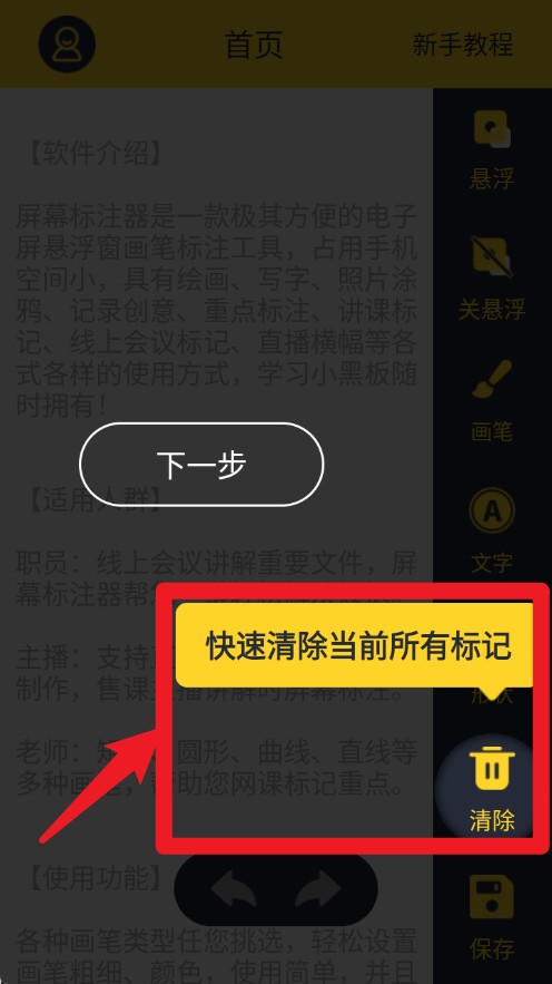 6、点击“清除”按钮可一键删除当前页面上的所有标注内容。