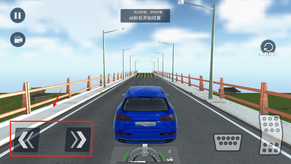 3、在飞车模式中,点击屏幕下方的左右箭头按钮,控制车辆左右移动。