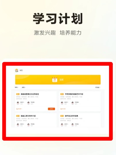 2、在学习计划界面中,可查看推荐课程与安排,系统根据兴趣匹配,帮助激发学生的学习热情与专注力。