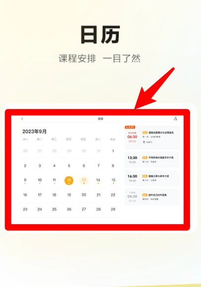 3、日历功能展示每月课程时间安排,点击具体日期可查看对应课程,课程信息一目了然,便于合理规划时间。