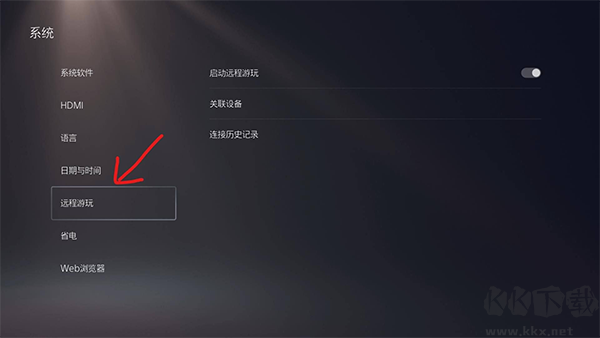 2、在打开的系统页面中,继续点击【远程游玩】这一选项。