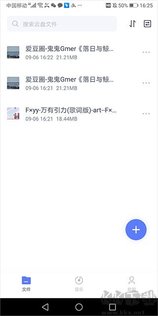 1、打开应用即可根据文件类型将文件上传到云盘中