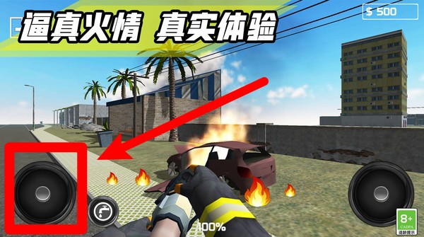 3.利用左侧方向键调整角色移动位置,灵活接近火源,精准灭火,确保现场安全并高效完成任务。