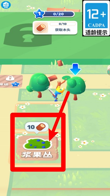 1.根据系统提示积累足够的木头后,解锁浆果丛等新区域,获取更多食材与资源,扩展城镇版图。