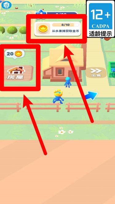 2.完成任务从水果丛中收集金币资源,用于解锁房屋建筑功能,逐步扩展你的城镇范围。