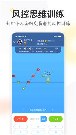 2、仿真模拟现实中的各种各样情景,用趣味性的形式来用户迅速掌握钱财运动规律。