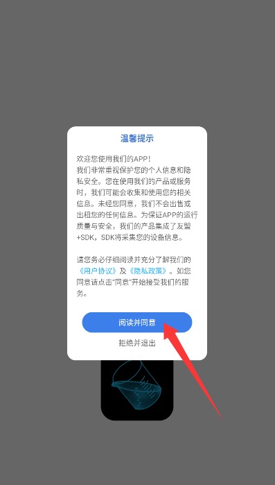 1、首次启动这软件需完整阅读用户协议与隐私政策,点击阅读并同意按钮进入登录界面。