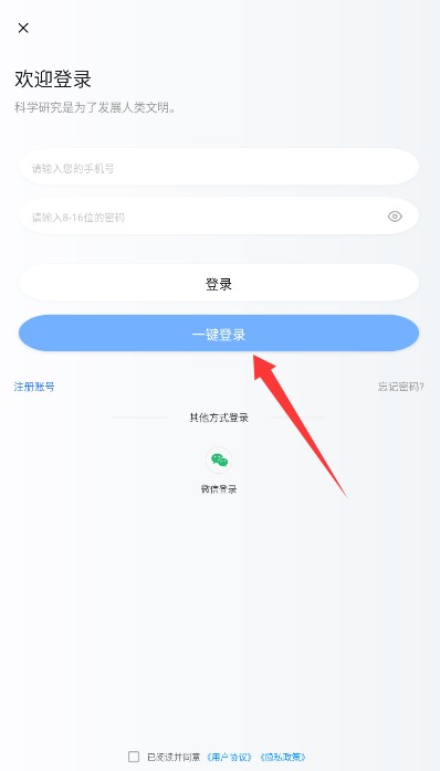 2、在登录界面可选择手机号密码登录或第三方微信快捷登录,输入相应信息并勾选协议后完成认证。