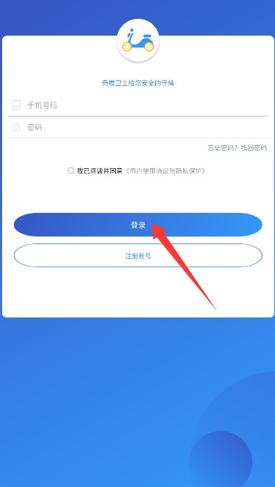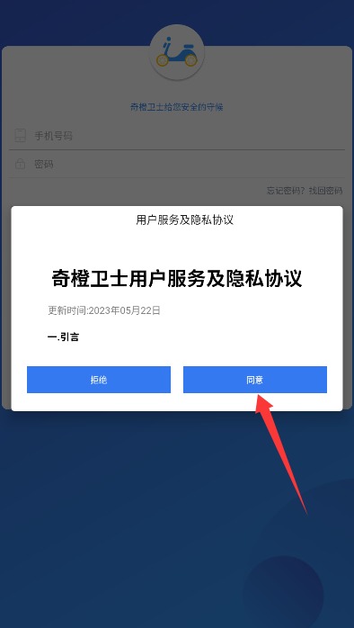 1、首次启动奇橙卫士需仔细阅读用户协议与隐私条款,确认无误后点击同意按钮进入注册页面。