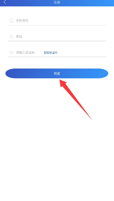 2、在注册界面填写手机号并设置登录密码,输入收到的短信验证码后点击完成即可开通账户。