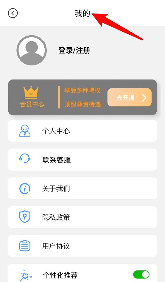 4、“我的”页面可进行账号注册与登录,同时查看个人中心、联系客服及隐私协议等功能。