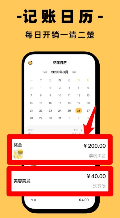 2、记账日历:清晰显示每日收支情况,每日开销明细一清二楚。