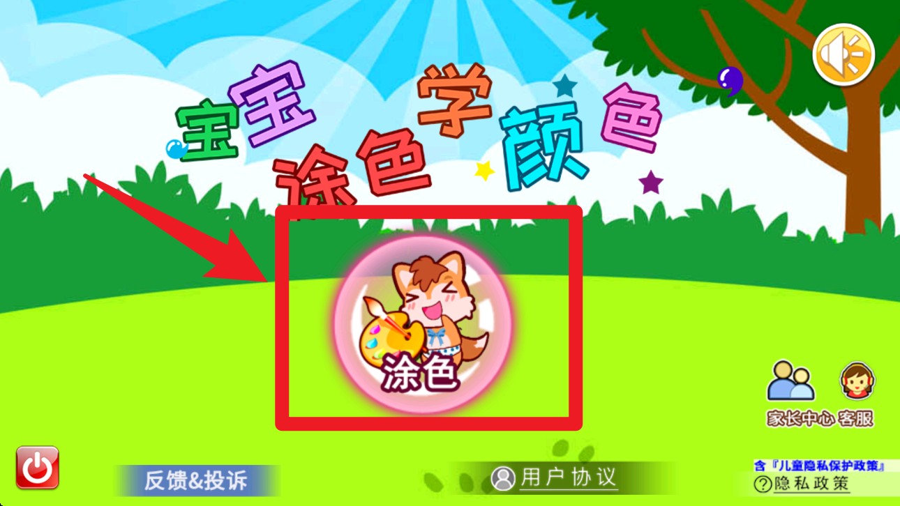 1. 在首页点击中间的“涂色”图标,进入宝宝学颜色的绘画功能界面。