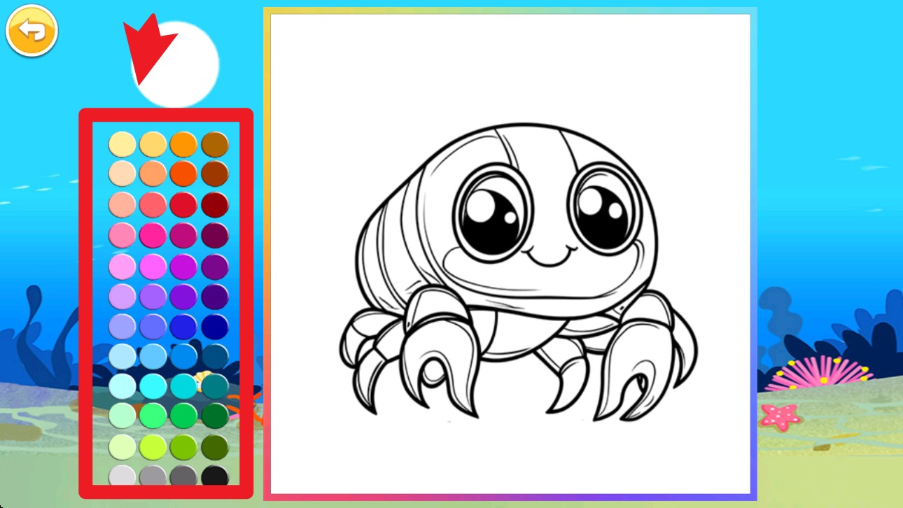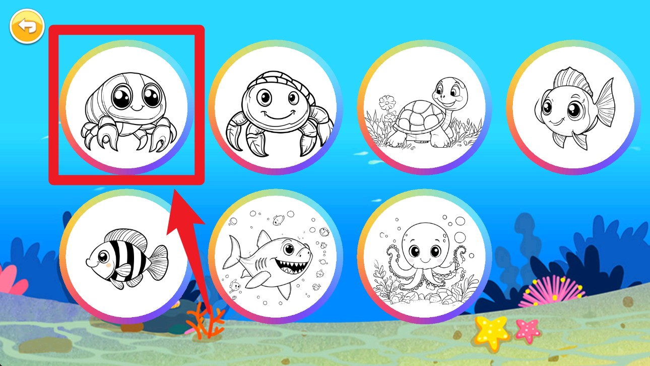 3. 浏览图案,点击想要涂色的图片(如螃蟹),就会跳转到上色界面。