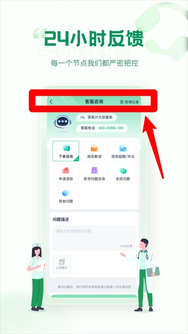 5、如有疑问可进入“客服咨询”页面联系客服,提供全天候反馈服务并支持查看历史记录。
