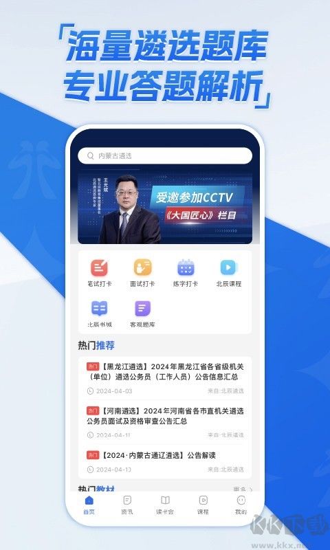 北辰遴选app是一款于公务员和事业单位考试的备考软件。该软件提供大量真题题库,涵盖行测、申论、公共基础知识等考试科目,用户可随时在线练习,软件根据考试大纲和历年命题规律,定期更新题库内容,确保题目时效性,智能组卷功能可按照用户需求生成模拟试卷,支持自定义题型和难度,错题自动归档功能帮助考生针对性复习薄弱环节,备考资料板块整理了大量政策文件、时事热点和写作范文,方便用户查阅学习。