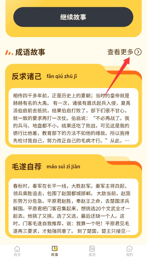 2、进入成语故事专区可浏览各类成语典故,通过生动故事了解成语的出处和使用场景。